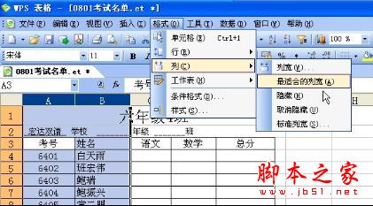 如果选择了 最适合的列宽 ,那么各列的宽度以刚好容纳各列内容为佳,操作方法见图2-3-3所示。