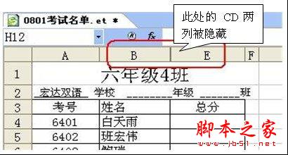 如果我们不想要图2-3-4中的C、D两列,我们可以选中此两列,然后点击菜单 格式―>列―>隐藏,那么CD两列将被隐藏,打印时也将不打印。操作后如图2-3-5所示。