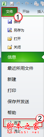 在 Excel 2010 中,单击“文件-选项”。