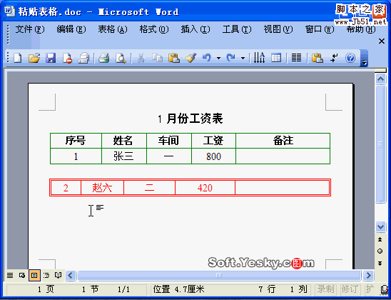 Word表格中通过追加表粘贴将插入点置于表格下面一行,单击右键,选择“通过追加表粘贴”,复制的表格将以和上表等列宽的方式追加在下面。但是,原有的表格框线格式将丢失。