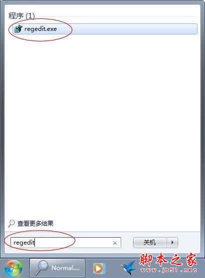 方法二:打开系统左下方的“开始”按钮,在“搜索程序和文件”中输入“Regedit”,然后选择“Regedit.exe”进入注册表;