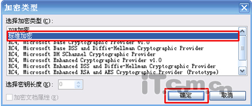 此时会调出一个选项窗口,你可以直接输入自己的密码,按确定按钮就搞定,系统会自动按照默认的密码标准为你加密,如果你觉得还不放心的话,你可以点击高级选项,选择其他的密码标准,如图2、图3所示: