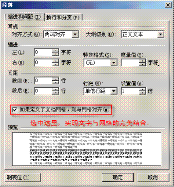 最后补充一点:要实现每行文字都在横线上,还需要从格式菜单中选择“段落”,并在“缩进和间距”选项卡中勾选“如果定义了文档网格,则与网格对齐”(图2-87)。