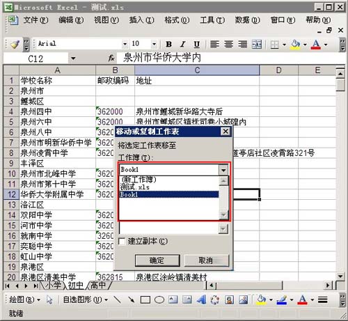 3、此时选择你要转移到的新工作表当中,如下图的“book1”。