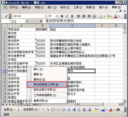 1、打开Excel表格在工作薄中选择要转移的页面,如下图中的“初中”。