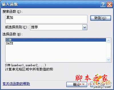 2. 执行“插入”菜单→“函数”命令,弹出如图1所示的窗口