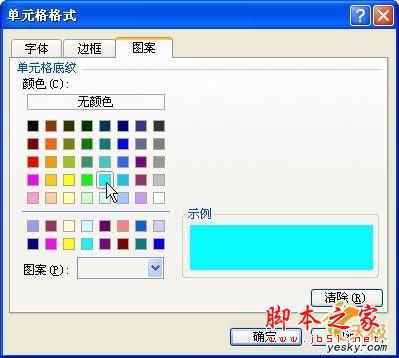 点击右下方的“格式”按钮,在打开的“单元格格式”对话框中,点击“图案”选项卡,选取一种填充颜色。如图2所示。确定后,关闭此对话框。