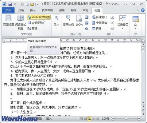 3.Web版式视图 “Web版式视图”以网页的形式显示Word2010文档,Web版式视图适用于发送电子邮件和创建网页,如图3所示。