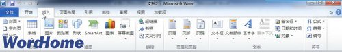 2.“开始”功能区 .“插入”功能区 “插入”功能区包括页、表格、插图、链接、页眉和页脚、文本、符号和特殊符号几个组,对应Word2003中“插入”菜单的部分命令,主要用于在Word2010文档中插入各种元素,如图2所示。