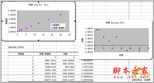 更多的信息在生成的表格中,详细的参数项目完全可以满足回归分析的各项要求。下图提供的是拟合直线的得回归分析中方差、标准差等各项信息。