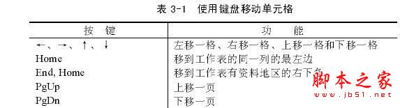 也可以使用键盘移动单元格指针,其操作见表3-1所示。