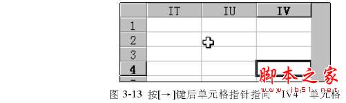 再次按下[End]键。按[→]键,我们就会看到单元格指针已经指向了“IV4”单元格,同时在名字框中显示出当前单元格地址,如图3-13所示。