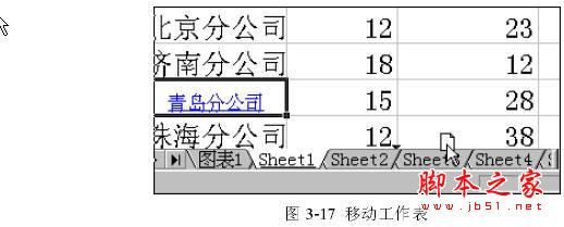 要在一本工作簿中调整工作表的次序,只需在工作表选项卡上单击选中的工作表选项卡,然后沿着选项卡行拖动选中的工作表到达新的位置,松开鼠标键即可将工作表移动到新的位置。在拖动过程中,屏幕上会出现一个黑色的三角形,来指示工作表要被插入的位置,如图3-17的显示。