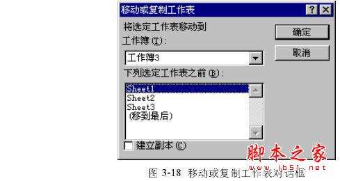 (2) 执行“编辑”菜单中的“移动或复制工作表”命令,这时屏幕上出现如图3-18所示的对话框。