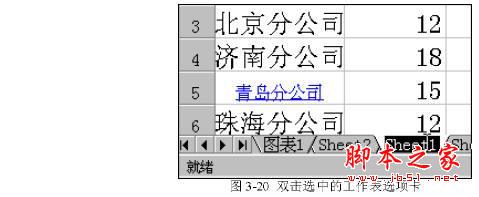 要改变工作表的名字,只需“双击”选中的工作表选项卡,这时屏幕上会看到工作表选项卡反黑显示,如图3-20所示。