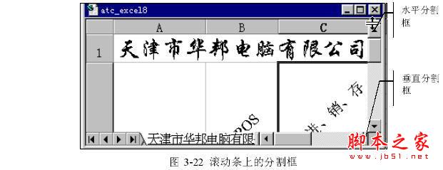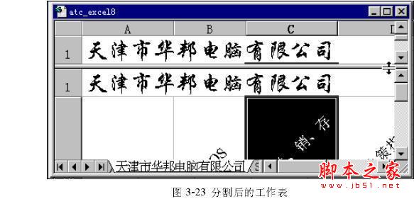 水平分割工作表,首先我们将鼠标指针指向水平分割框,然后按下鼠标拖动分割框到自己满意的位置,松开鼠标即完成了对窗口的分割,或者在水平分割框双击,系统会按照默认的方式分割工作表。分割后的工作表如图3-23所示。