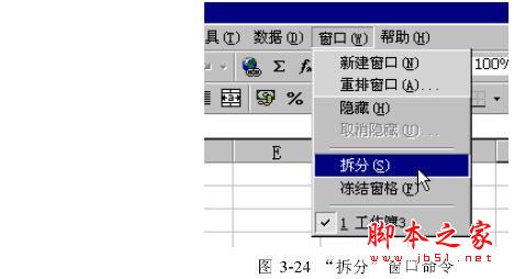 也可以使用“窗口”菜单中的“拆分窗口”命令(如图3-24所示)来达到上述分割窗口的目的。对于垂直分割窗口,其方法和水平分割窗口相同,这里就不再赘述。
