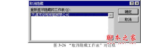 (1) 执行“格式”菜单中的“工作表”命令中的“取消隐藏”命令,在屏幕上便出现一个如图3-26的对话框。