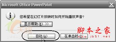 1.依次点击“插入-影片和声音-文件中的声音”(图1),在出现的“插入声音”对话框中选中要作为背景音乐的文件,然后单击“确定”(图2),在弹出的对话框中点击“自动”按钮插入音乐对象(图3)。