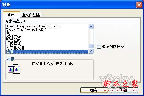 第二步:在“对象”对话框中选择“音效”→单击“确定”按钮。