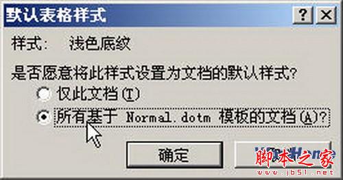 第2步,打开Word 2007“默认表格样式”对话框,选中“所有基于Normal.dotm模板的文档”复选框,并单击“确定”按钮,如图所示。
