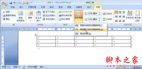 Word 2007设置表格自动调整方式