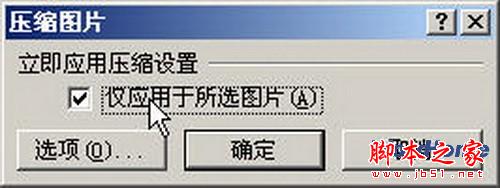第2步,在打开的Word 2007“压缩图片”对话框中,单击“选项”按钮,如图所示。