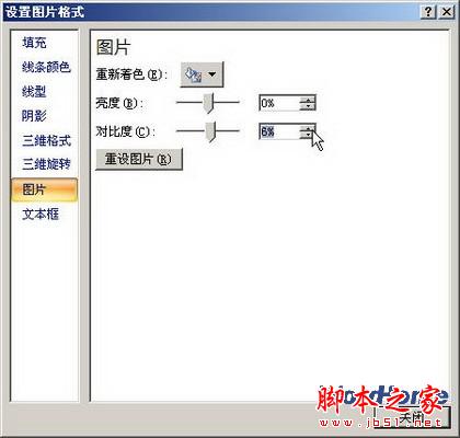 2.在“设置图片格式”对话框设置Word 2007图片对比度