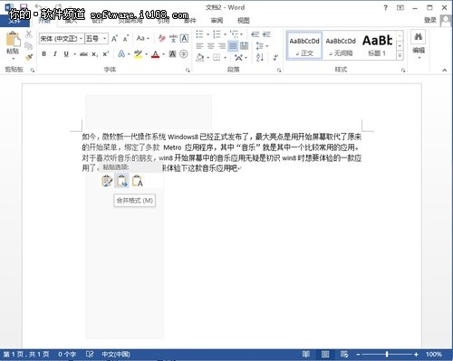 word 2013中,将鼠标停留在“保留源格式”时,在文档页面无需粘贴操作就可以直接预览保留复制内容源格式的内容。