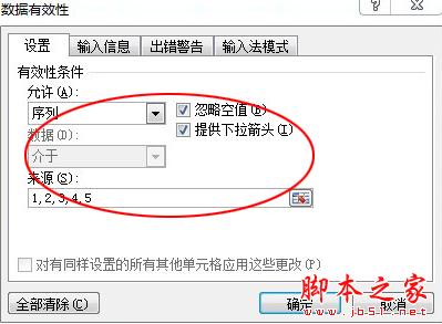 方法二:打开excel2007,进入到页面,先选定某一单元格,在菜单上上选择“数据”-“数据有效性”,弹出数据有效性的窗口栏,然后在设置菜单上作出如图所示的设置,我们在“来源”中输入数据时候,一定要用英文逗号隔开,不能用中文逗号哦。