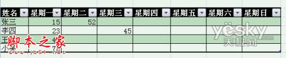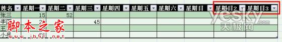 图示:自动添加表格字段标题“星期二”