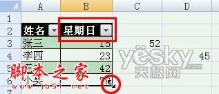 标题栏自动出现了“星期三”,Excel 2007自动添加表格字段标题功能生效。