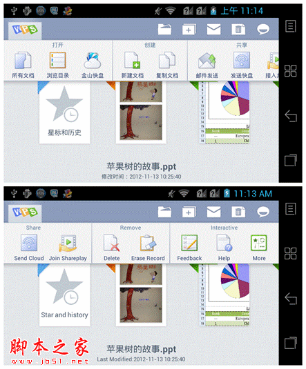 以往的WPS移动版安装包仅支持单语言,如果是中文版安装包,则只包含简体中文语言界面。此次新版本更新之后,安装包将默认支持中文、英文两种语言,可以满足不同用户的使用习惯。WPS移动版将会根据设备的系统默认语言切换界面。