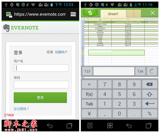 此次版本更新中,改进和修复了很多细节操作,进一步提升了产品的整体使用感受。例如,新建文档以及在【浏览目录】中打开文件时,新增了进度圈响应功能。而为配合Evernote的新改进,WPS移动版也将Evernote登录方式修改为了网页登录方式。另外,在表格编辑中,改进了选中多个单元格并双击选中区域后的键盘弹出操作。如下图所示。