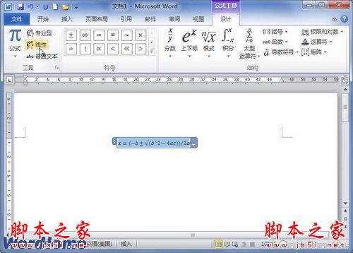 专业型公式布局即使用多行显示公式结构,以保持数学公式的原貌,从而增加易读性。线性公式布局则是将公式在单行显示出来,以方便在Word2010文档中的排版。用户可以根据需要在专业型公式和线性公式布局之间进行切换。