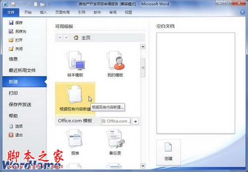 第2步,打开“新建文档”对话框,在左窗格中单击“根据现有内容创建”按钮,如图2所示。