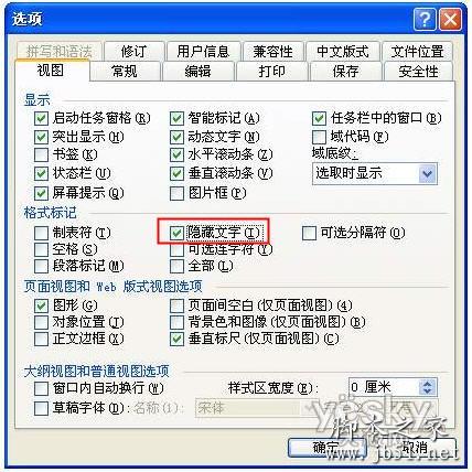 隐藏文字后,怎样设置能看得见它们呢?方法如下:单击“工具→选项→视图→格式标记”,选中“隐藏文字”复选框,这样我们就可以看到那些被隐藏的字符了。