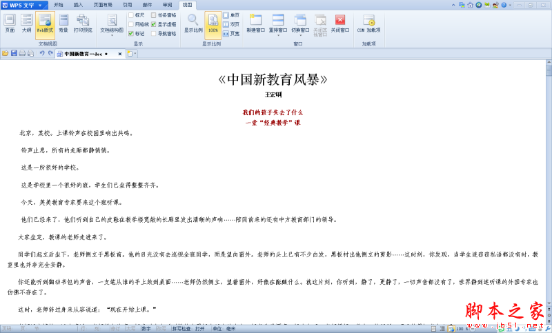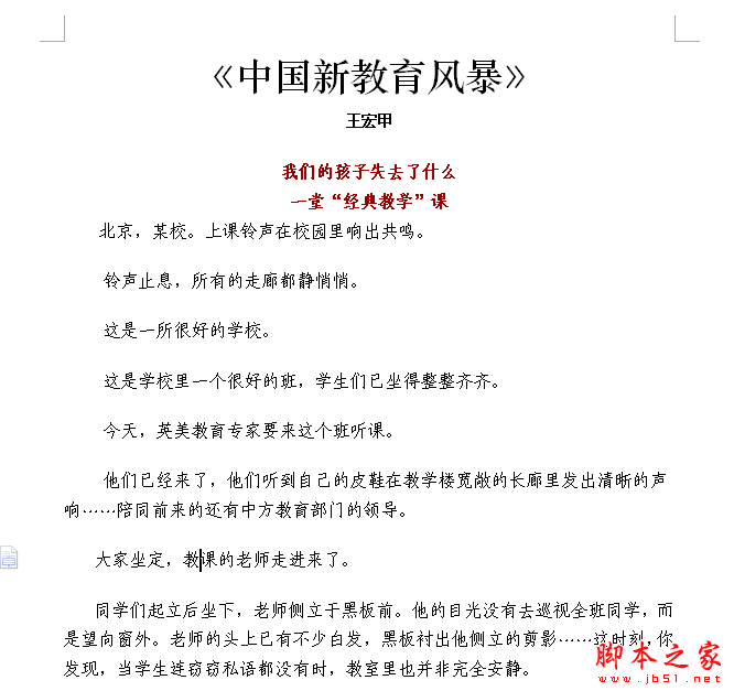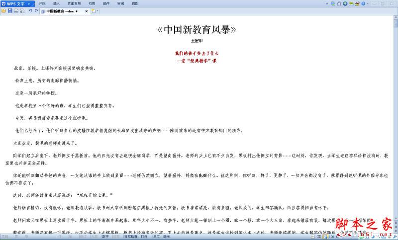 朋友向我推荐了王宏甲老师的《中国新教育风暴》一书,我通过网络搜索到本书的电子稿以后,立即被作者动情的讲述所吸引……电子书很长,而且里面存在大量空行(如图1),但这些却难不倒我,在WPS2012里,以下三招即可为我们的阅读带来极大的方便。