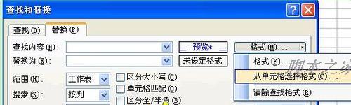 上图中,点击“格式”右边的小三角形,然后选择“从单元格选择格式”,接着,使用鼠标点击一下A2单元格,因为你要找的是红色的,如果是其他颜色的,就点击其他单元格。
