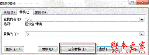 pc6小编在这里希望段落之间留下一行空行,删除其它多余的。因此,可以在查找栏输入^p^p,替换栏输入^p,将两行空行变成一行。然后,按全部替换按钮
