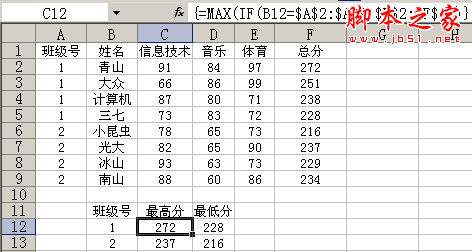 综合外围的MAX函数,即是求该班级的最高分!