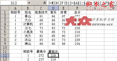 excel如何能够根据原始成绩中的班级号和总分,然后算出最高分、最低分?