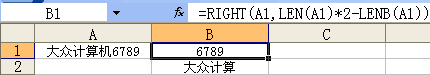 通过公式:=RIGHT(A1,LEN(A1)*2-LENB(A1))