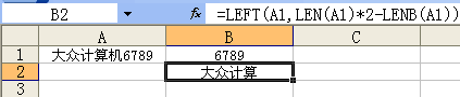 现在,我们来仔细分析如上的综合函数::=LEFT(A1,LEN(A1)*2-LENB(A1))