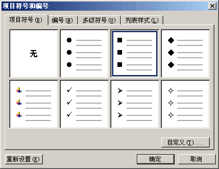执行菜单操作“格式”→“项目符号和编号”,就会弹出如下图。