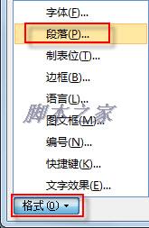 4、单击【格式】按钮,在随即打开的下拉列表中单击“段落”选项。