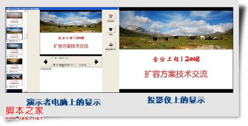 幻灯片分屏演示的效果是,作为演示者,你可看到PPT演示者视图,包括PPT详细的备注,而观众却看不到。上图的左边部分,就是演示者电脑上的显示,右边部分是投影仪上的显示。可以看出分屏演示的好处有: