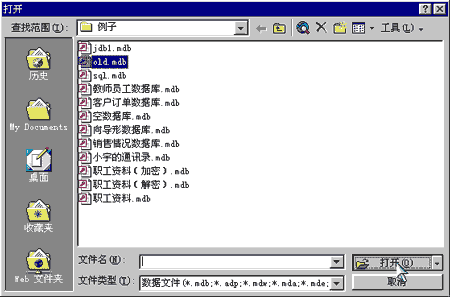 首先我们讲讲将旧版本的数据库转换到“Access2000”所能接收的数据库版本。单击工具栏上的“打开”按钮,选择旧的“数据库”文件,