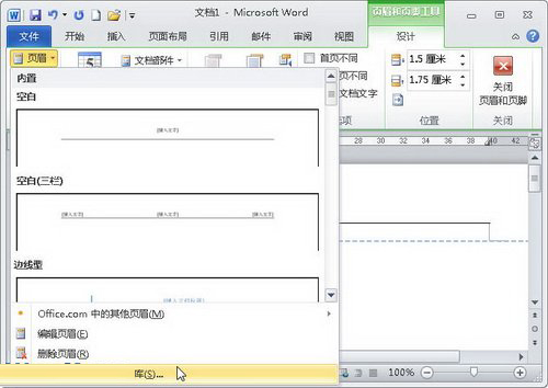 如果用户需要插入自定义的页眉,则只需从Word2010页眉库中选择即可,如图2009121505所示。