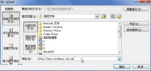 图1 单击“超链接”按钮第2步,打开“插入超链接”对话框,在地址编辑框中输入网页链接地址(也可以链接向指定文件),并单击“确定”按钮,如图2所示。